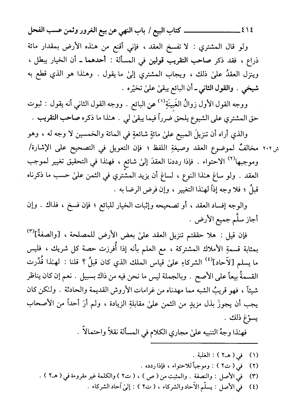 ووجه القول الأول زوالُ الغَبينَةِ (1) عن البائع. ووجه القول الثاني أنه يقول: ثبوت حق المشتري على الشيوع يلحقَ ضرراً فيما يبقى لي. هذا ما ذكره صاحب التقريب.