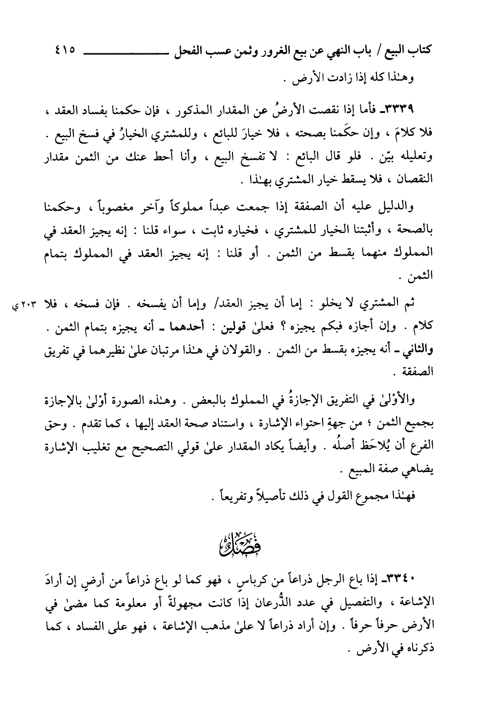 3339 - فأما إذا نقصت الأرضُ عن المقدار المذكور، فإن حكمنا بفساد العقد، فلا كلامَ، وإن حكَمنا بصحته، فلا خيارَ للبائع، وللمشتري الخيارُ في فسخ البيع.
