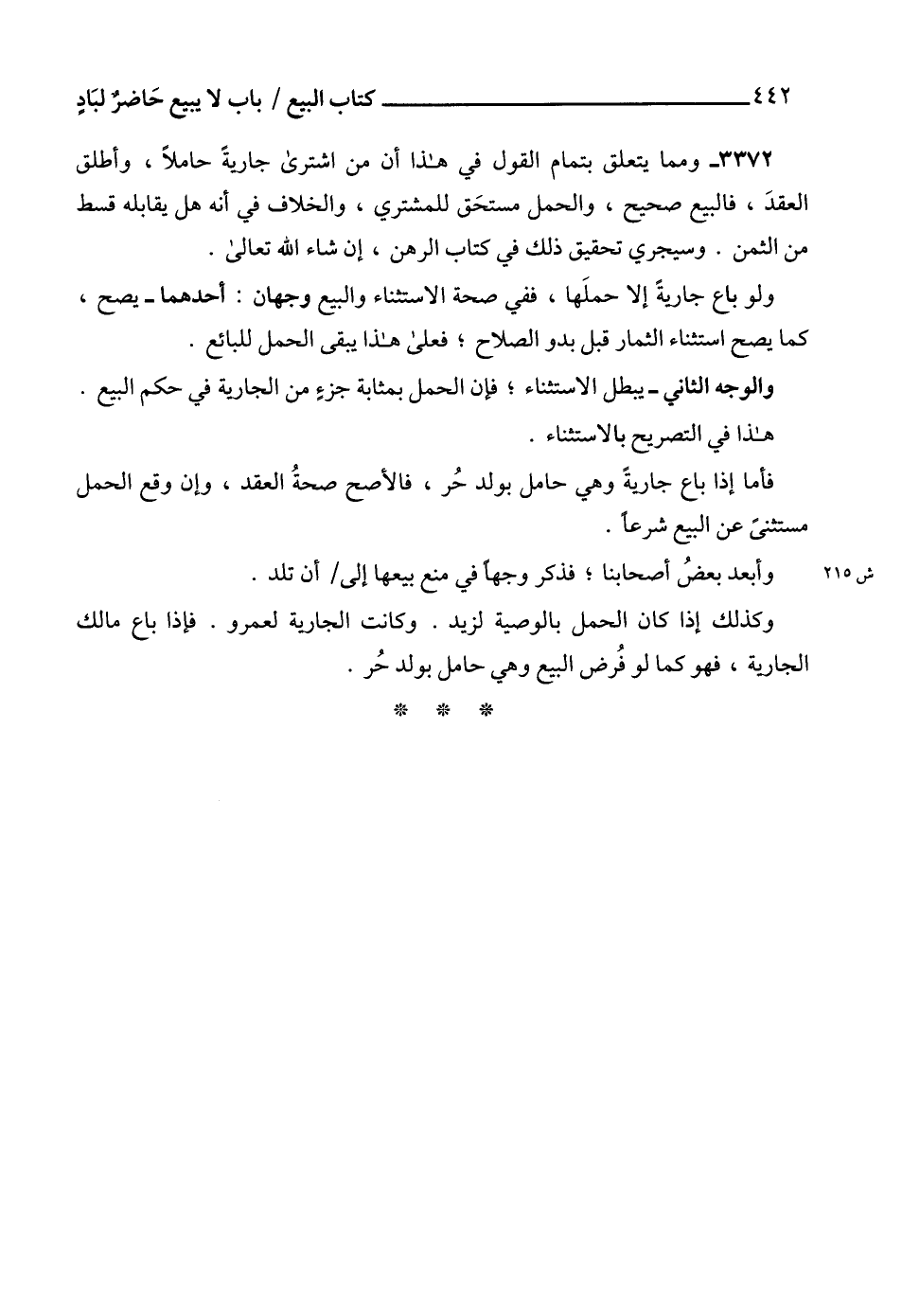 3372 - ومما يتعلق بتمام القول في هذا أن من اشترى جاريةً حاملاً، وأطلق العقدَ، فالبيع صحيح، والحمل مستحَق للمشتري، والخلاف في أنه هل يقابله قسط من الثمن. وسيجري تحقيق ذلك في كتاب الرهن، إن شاء الله تعالى.