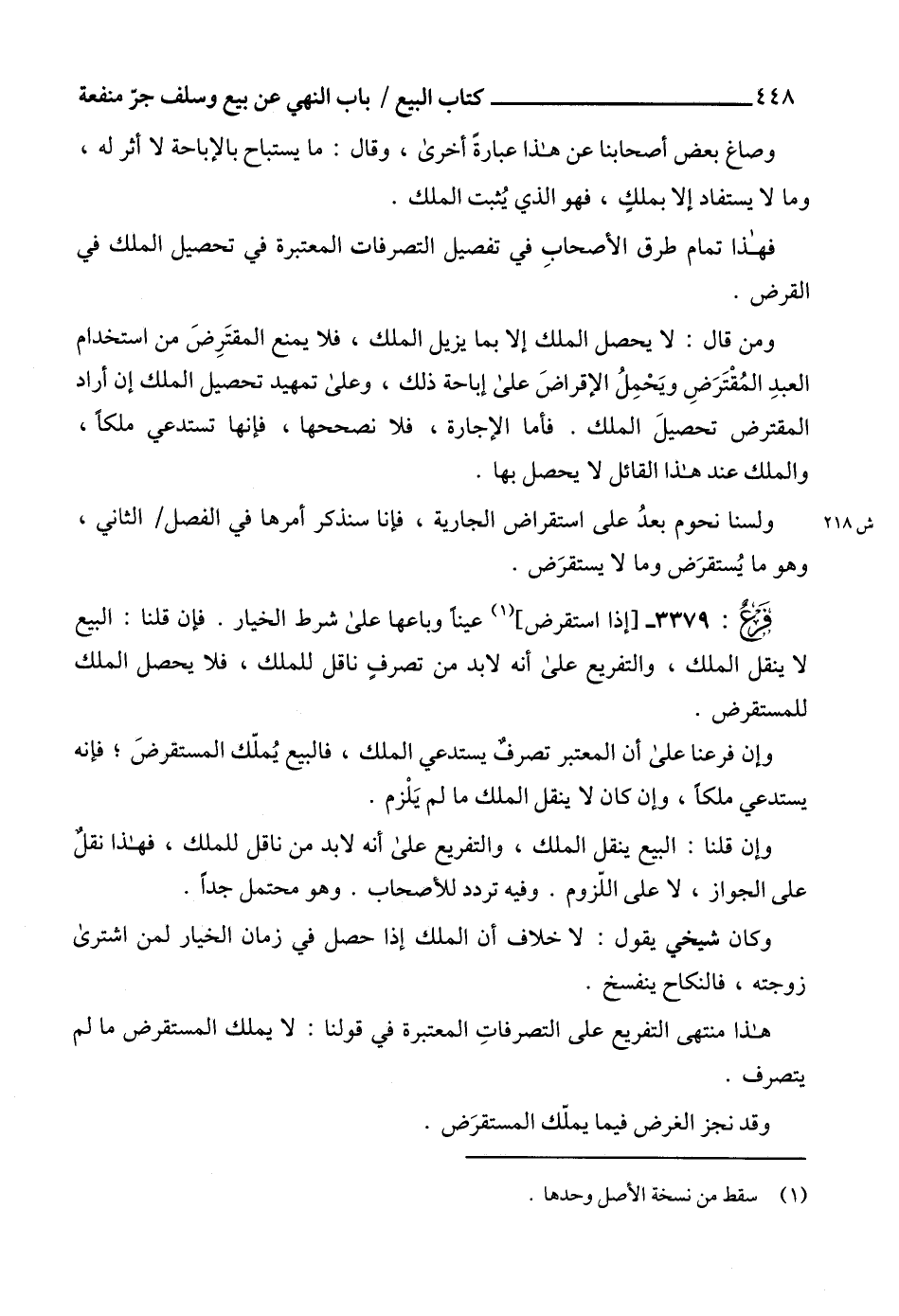 ولسنا نحوم بعدُ على استقراض الجارية، فإنا سنذكر أمرها في الفصل الثاني، وهو ما يُستقرَض وما لا يستقرَض.