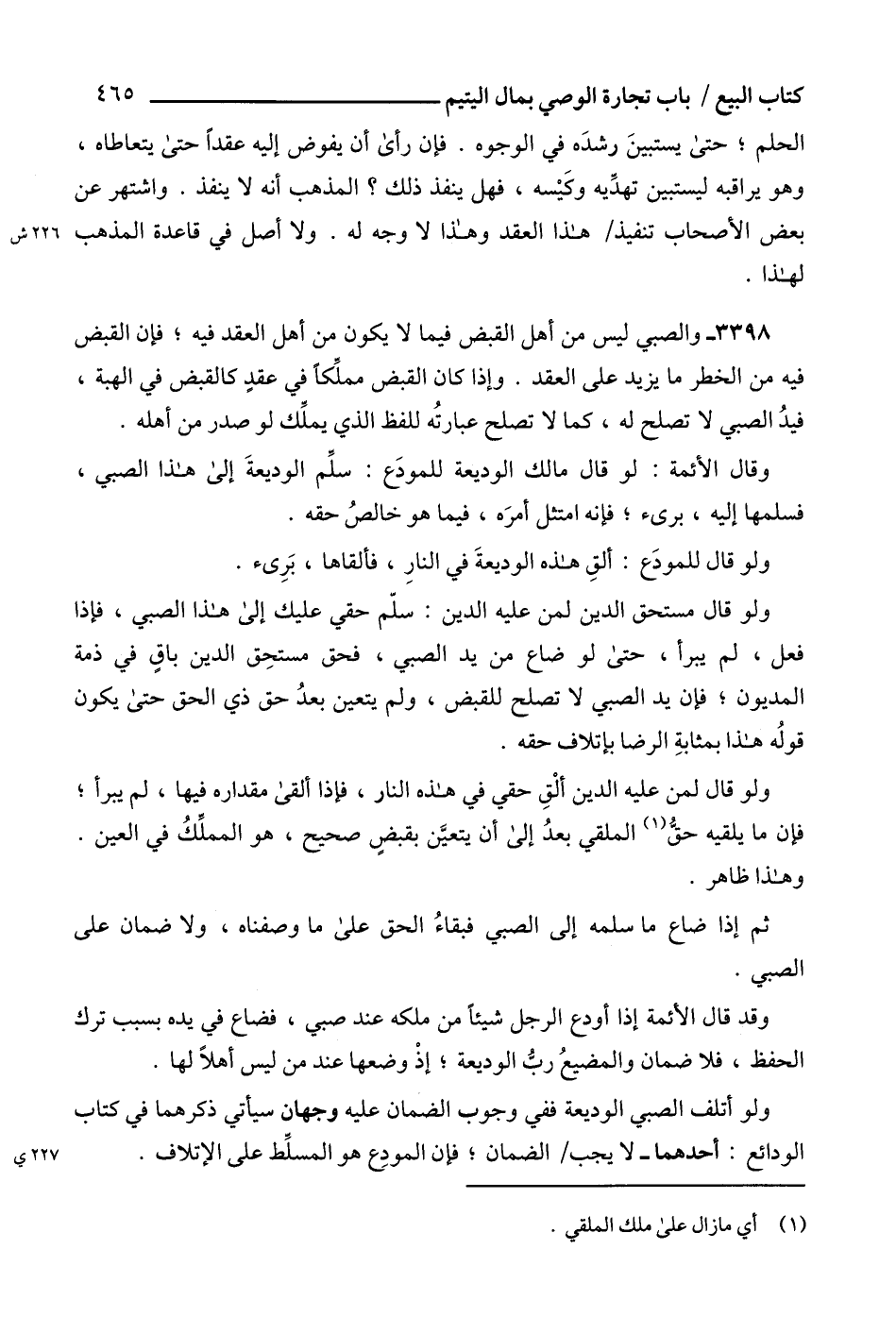 3398 - والصبي ليس من أهل القبض فيما لا يكون من أهل العقد فيه؛ فإن القبض فيه من الخطر ما يزيد على العقد. وإذا كان القبض مملِّكاً في عقدٍ كالقبض في الهبة، فيدُ الصبي لا تصلح له، كما لا تصلح عبارتُه للفظ الذي يملِّك لو صدر من أهله.