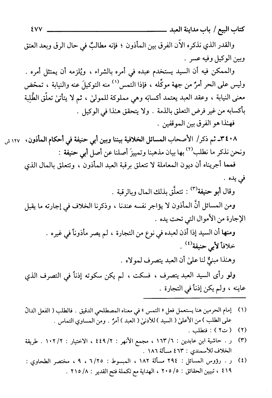 3408 - ثم ذكر الأصحاب المسائل الخلافية بيننا وبين أبي حنيفة في أحكام المأذون، ونحن نذكر ما نطلب (2) بها بيان مذهبنا وتمييزَ أصلنا عن أصل أبي حنيفة: