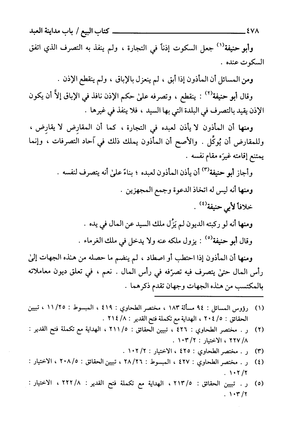 (5) ر. تبيين الحقائق: 5/ 213، الهداية مع تكملة فتح القدير: 8/ 222، الاختيار: 2/ 103.