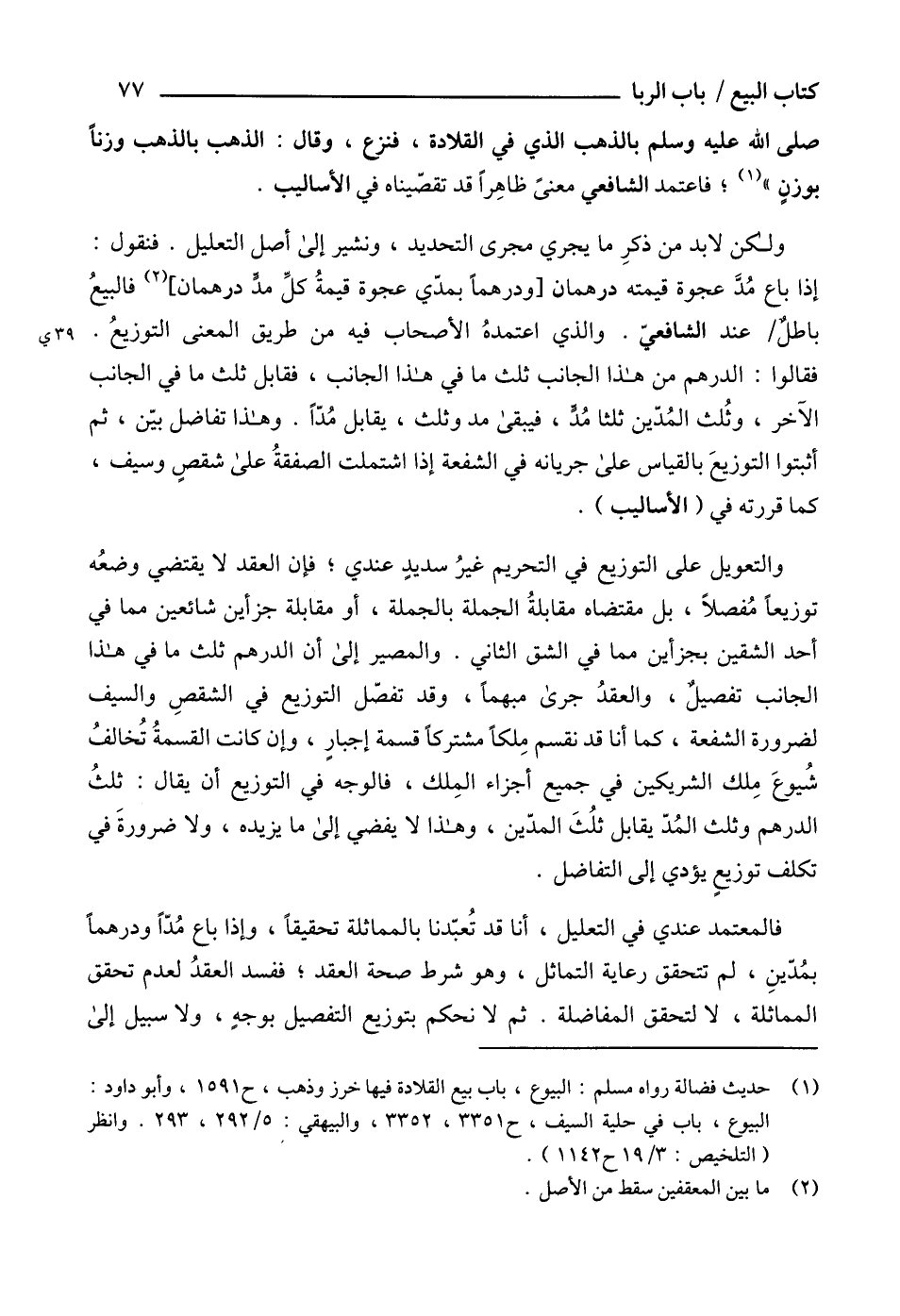 (1) حديث فضالة رواه مسلم: البيوع، باب بيع القلادة فيها خرز وذهب، ح 1591، وأبو داود: البيوع، باب في حلية السيف، ح 3351، 3352، والبيهقي: 5/ 292، 293. وانظر (التلخيص: 3/ 19 ح 1142).