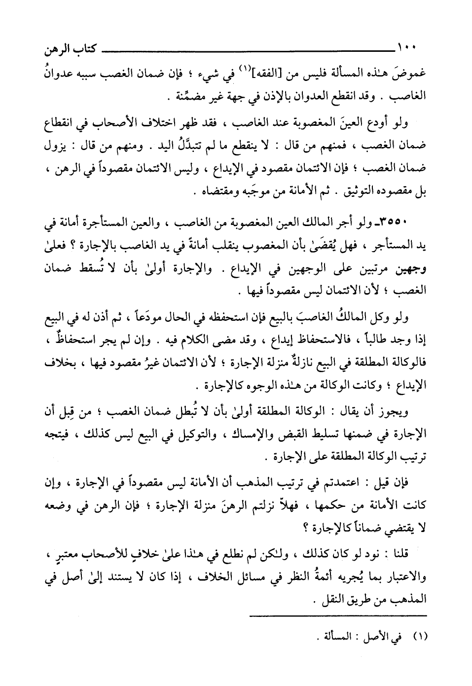 3550 - ولو أجر المالك العين المغصوبة من الغاصب، والعين المستأجرة أمانة في يد المستأجر، فهل يُقضَى بأن المغصوب ينقلب أمانة في يد الغاصب بالإجارة؟ فعلى وجهين مرتبين على الوجهين في الإيداع. والإجارة أولى بأن لا تُسقط ضمان الغصب؛ لأن الائتمان ليس مقصوداً فيها.