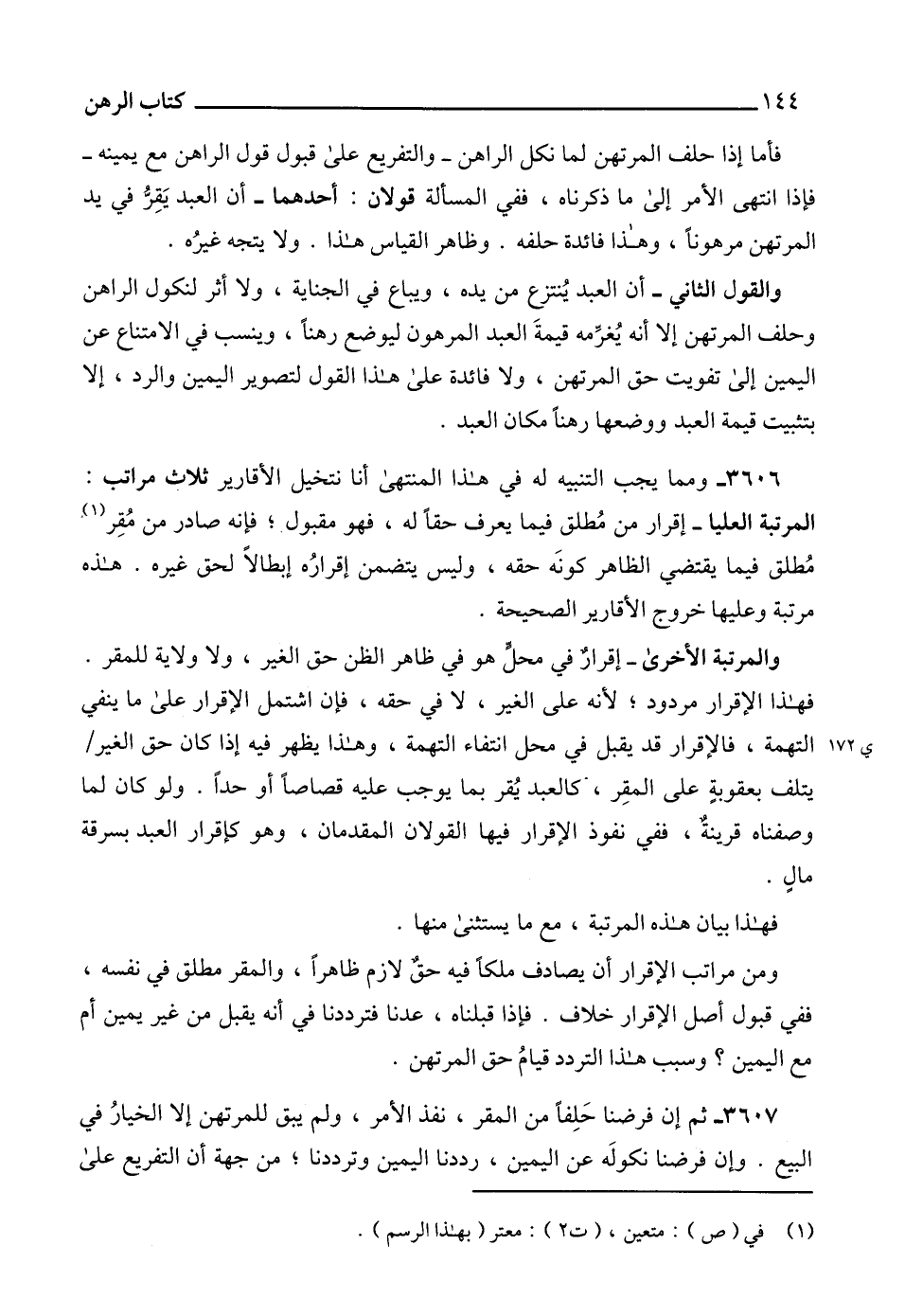 3606 - ومما يجب التنبيه له في هذا المنتهى أنا نتخيل الأقارير ثلاث مراتب: المرتبة العليا - إقرار من مُطلق فيما يعرف حقاً له، فهو مقبول؛ فإنه صادر من مُقِر (1) مُطلق فيما يقتضي الظاهر كونَه حقه، وليس يتضمن إقرارُه إبطالاً لحق غيره. هذه مرتبة وعليها خروج الأقارير الصحيحة.