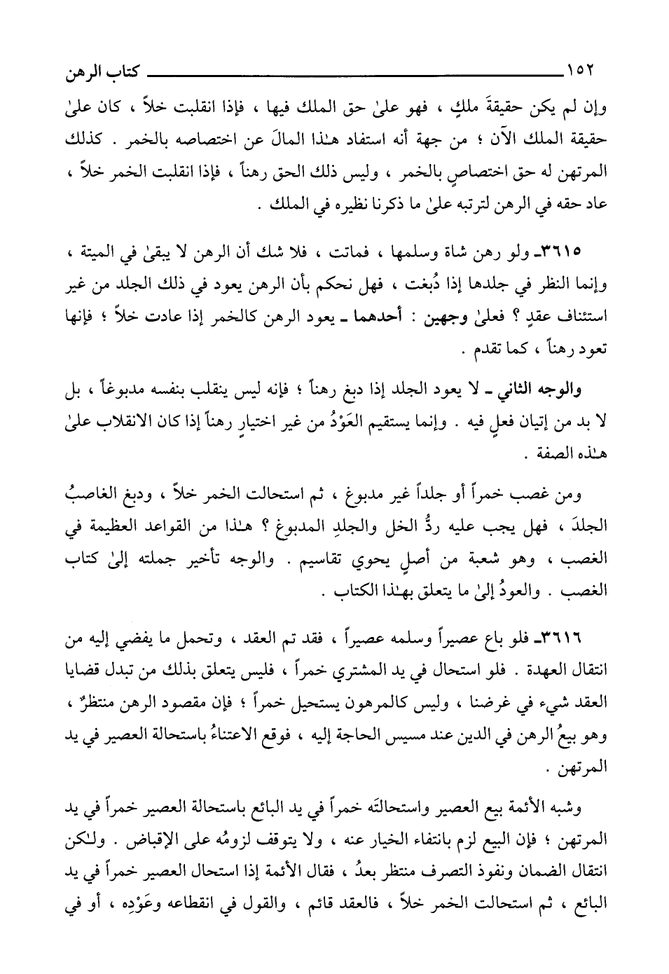 3616 - فلو باع عصيراً وسلمه عصيراً، فقد تم العقد، وتحمل ما يفضي إليه من انتقال العهدة. فلو استحال في يد المشتري خمراً، فليس يتعلق بذلك من تبدل قضايا العقد شيء في غرضنا، وليس كالمرهون يستحيل خمراً؛ فإن مقصود الرهن منتظرٌ، وهو بيعُ الرهن في الدين عند مسيس الحاجة إليه، فوقع الاعتناءُ باستحالة العصير في يد المرتهن.
