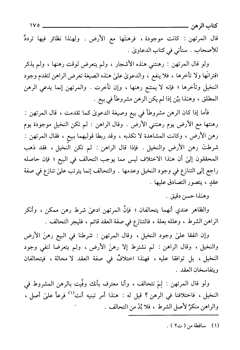 قال المرتهن: كانت موجودة، فرهنتَها مع الأرض. ولهذا نظائر فيها ترددٌ للأصحاب. ستأتي في كتاب الدعاوى.