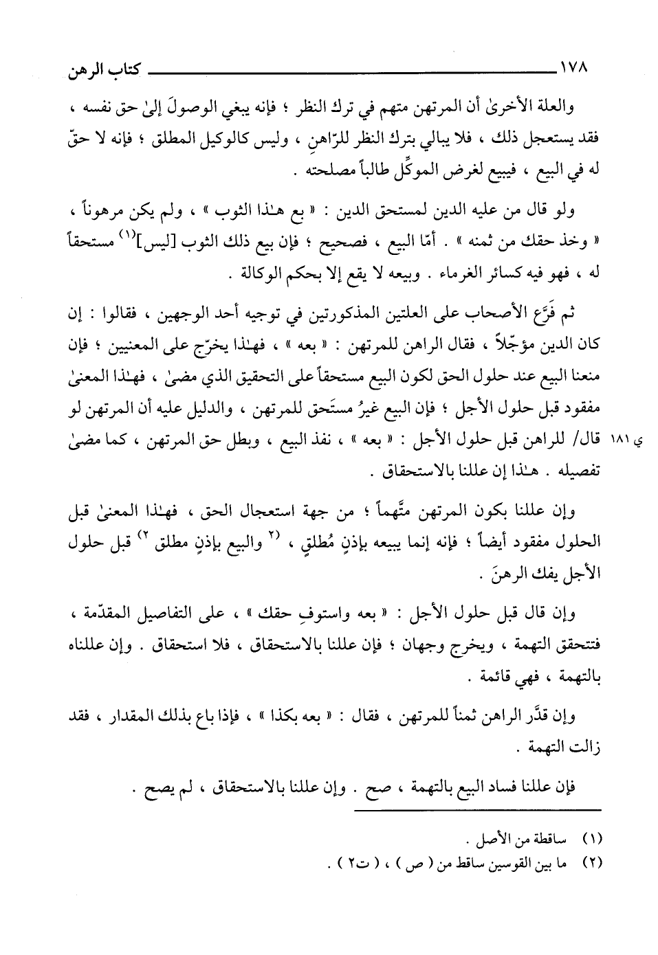 والعلة الأخرى أن المرتهن متهم في ترك النظر؛ فإنه يبغي الوصولَ إلى حق نفسه، فقد يستعجل ذلك، فلا يبالي بترك النظر للرّاهنِ، وليس كالوكيل المطلق؛ فإنه لا حقّ له في البيع، فيبيع لغرض الموكِّل طالباً مصلحته.
