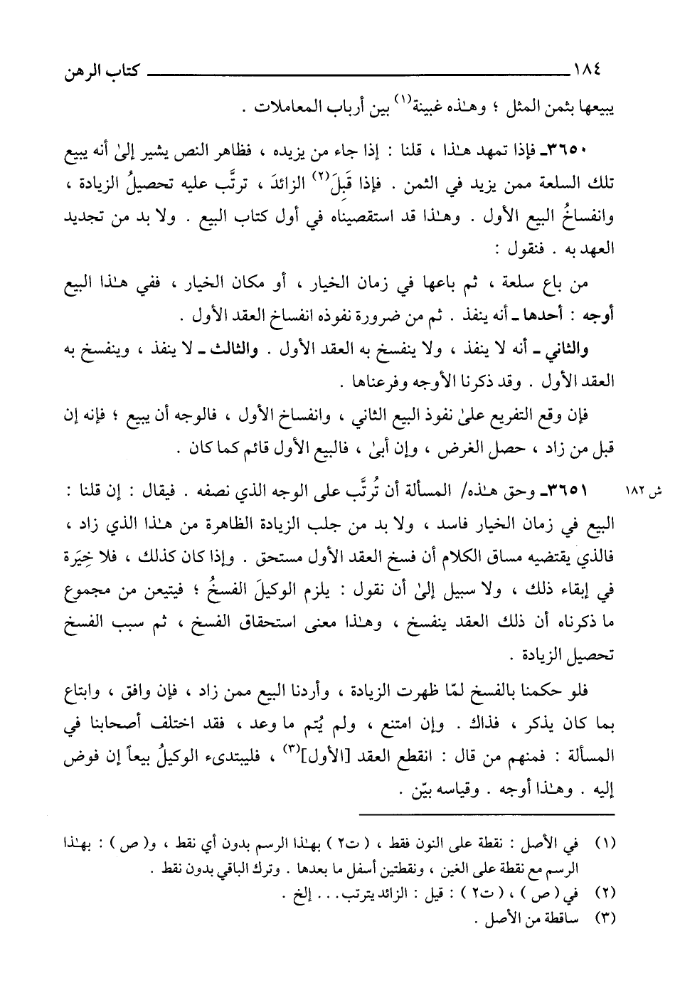 3651 - وحق هذه المسألة أن تُرتَّب على الوجه الذي نصفه. فيقال: إن قلنا: البيع في زمان الخيار فاسد، ولا بد من جلب الزيادة الظاهرة من هذا الذي زاد، فالذي يقتضيه مساق الكلام أن فسخ العقد الأول مستحق. وإذا كان كذلك، فلا خِيَرة في إبقاء ذلك، ولا سبيل إلى أن نقول: يلزم الوكيلَ الفسخُ، فيتيعن من مجموع ما ذكرناه أن ذلك العقد ينفسخ، وهذا معنى استحقاق الفسخ، ثم سبب الفسخ تحصيل الزيادة.