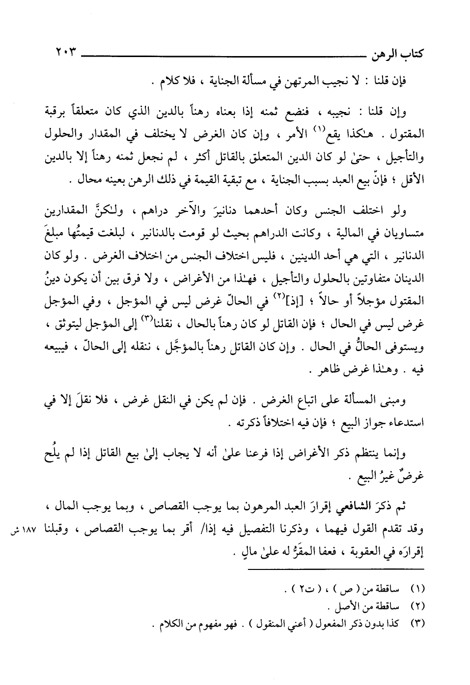 وإن قلنا: نجيبه، فنضع ثمنه إذا بعناه رهناً بالدين الذي كان متعلقاً برقبة المقتول. هكذا يقع (1) الأمر، وإن كان الغرض لا يختلف في المقدار والحلول والتأجيل، حتى لو كان الدين المتعلق بالقاتل أكثر، لم نجعل ثمنه رهناً إلا بالدين الأقل؛ فإنّ بيع العبد بسبب الجناية، مع تبقية القيمة في ذلك الرهن بعينه محال.
