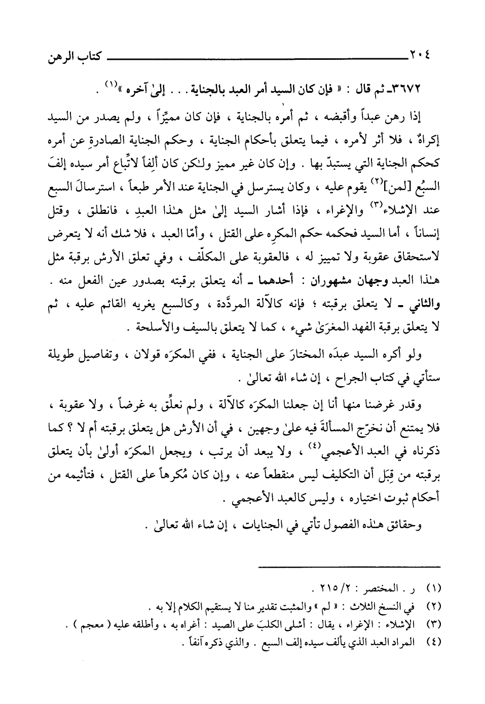 3672 - ثم قال: " فإن كان السيد أمر العبد بالجناية ... إلى آخره " (1).