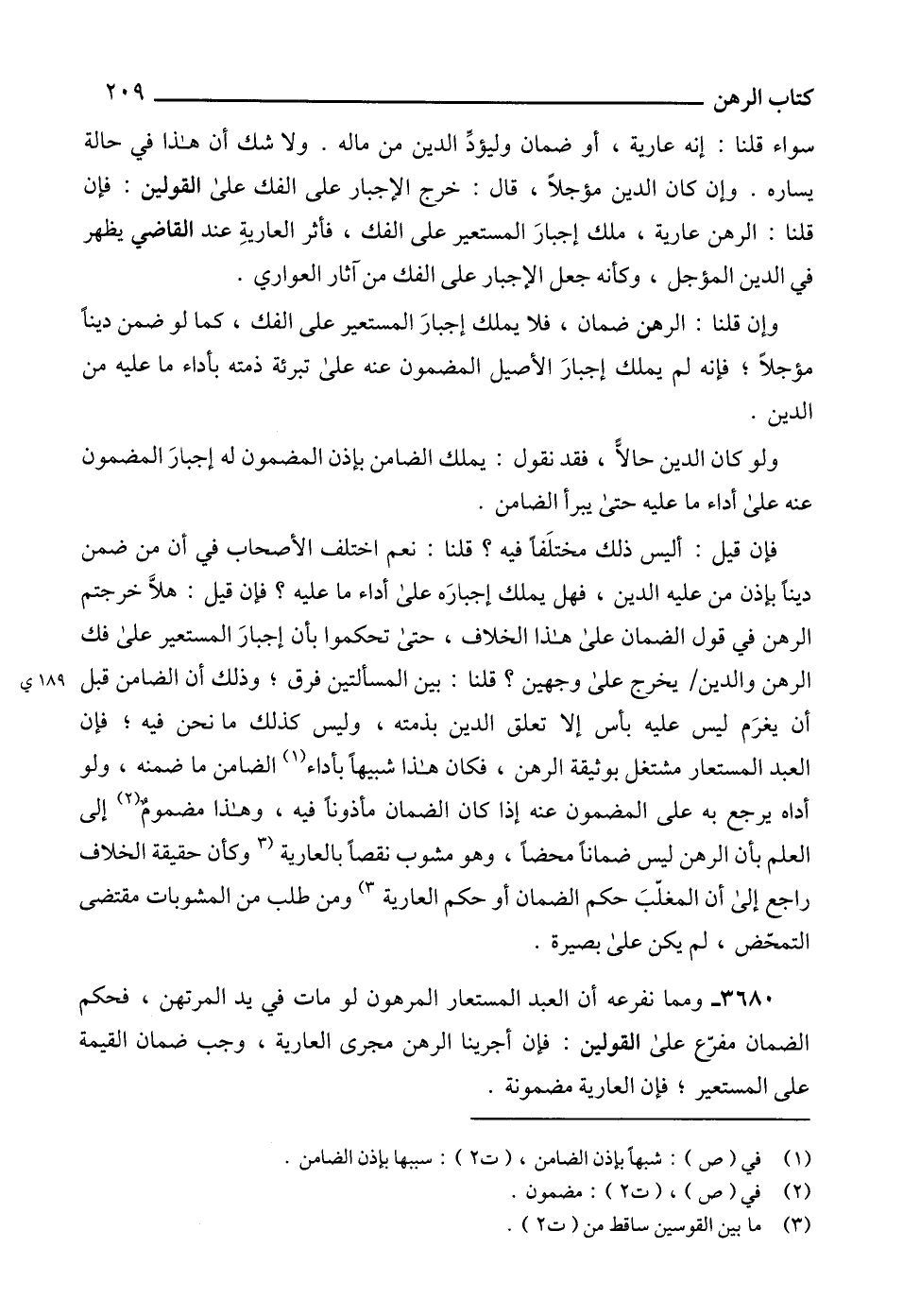 (1) في (ص): شبهاً بإذن الضامن، (ت 2): سببها بإذن الضامن.