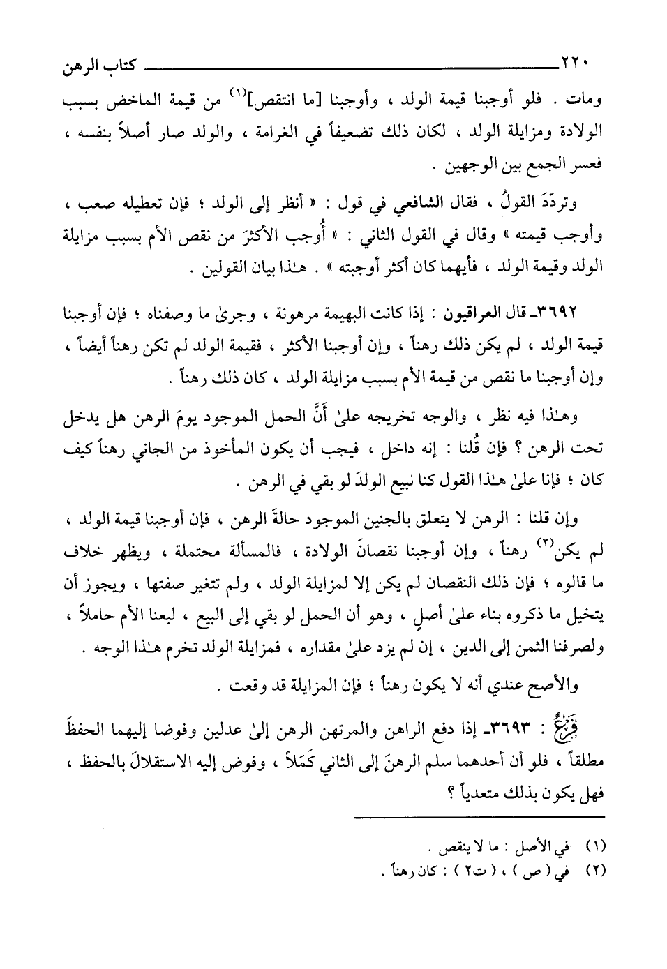 3692 - قال العراقيون: إذا كانت البهيمة مرهونة، وجرى ما وصفناه؛ فإن أوجبنا قيمة الولد، لم يكن ذلك رهناً، وإن أوجبناالأكثر، فقيمة الولد لم تكن رهناً أيضاًً، وإن أوجبنا ما نقص من قيمة الأم بسبب مزايلة الولد، كان ذلك رهناً.