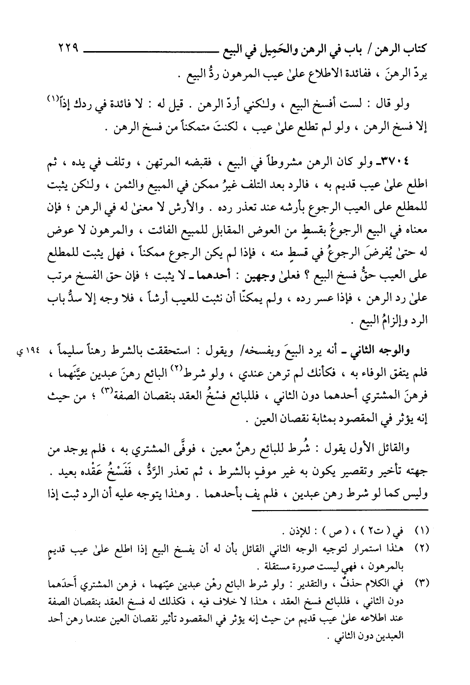 (3) في الكلام حذفٌ، والتقدير: ولو شرط البائع رهْن عبدين عيّنهما، فرهن المشتري أَحدَهما دون الثاني، فللبائع فسخ العقد، هذا لا خلاف فيه، فكذلك له فسخ العقد بنقصان الصفة عند اطلاعه على عيب قديم من حيث إنه يؤثر في المقصود تأثير نقصان العين عندما رهن أحد العبدين دون الثاني.