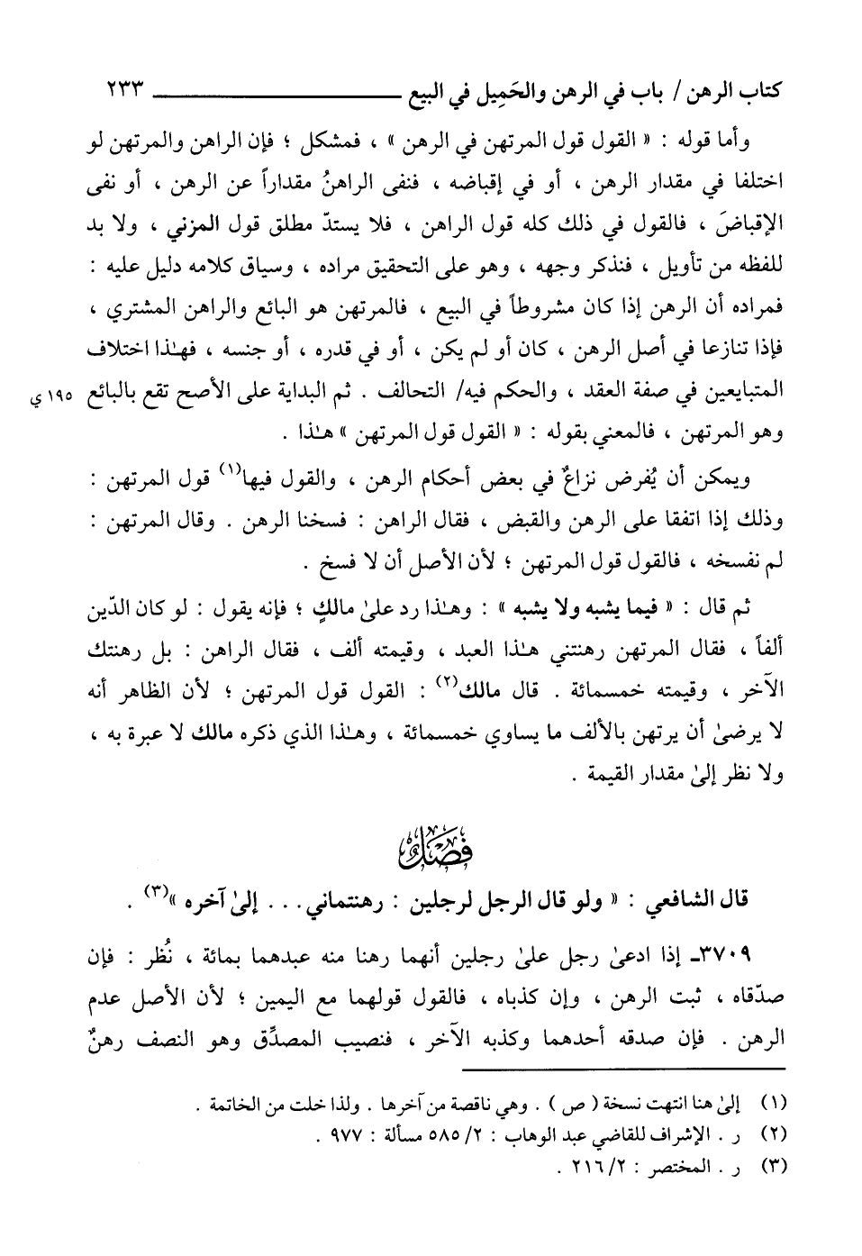 (2) ر. الإشراف للقاضي عبد الوهاب: 2/ 585 مسألة: 977.