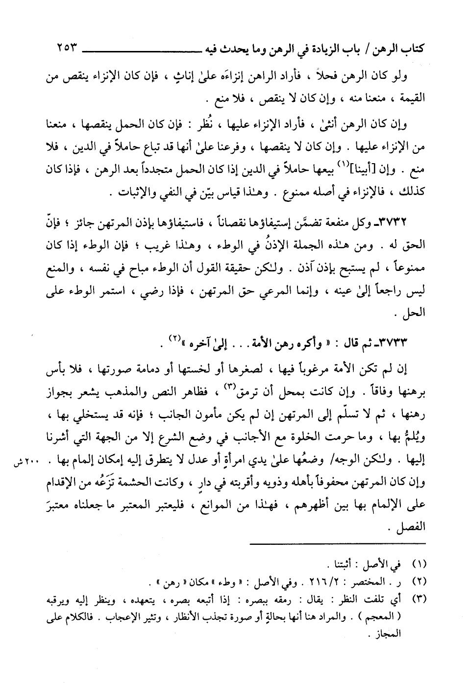 3733 - ثم قال: "وأكره رهن الأمة ... إلى آخره" (2).