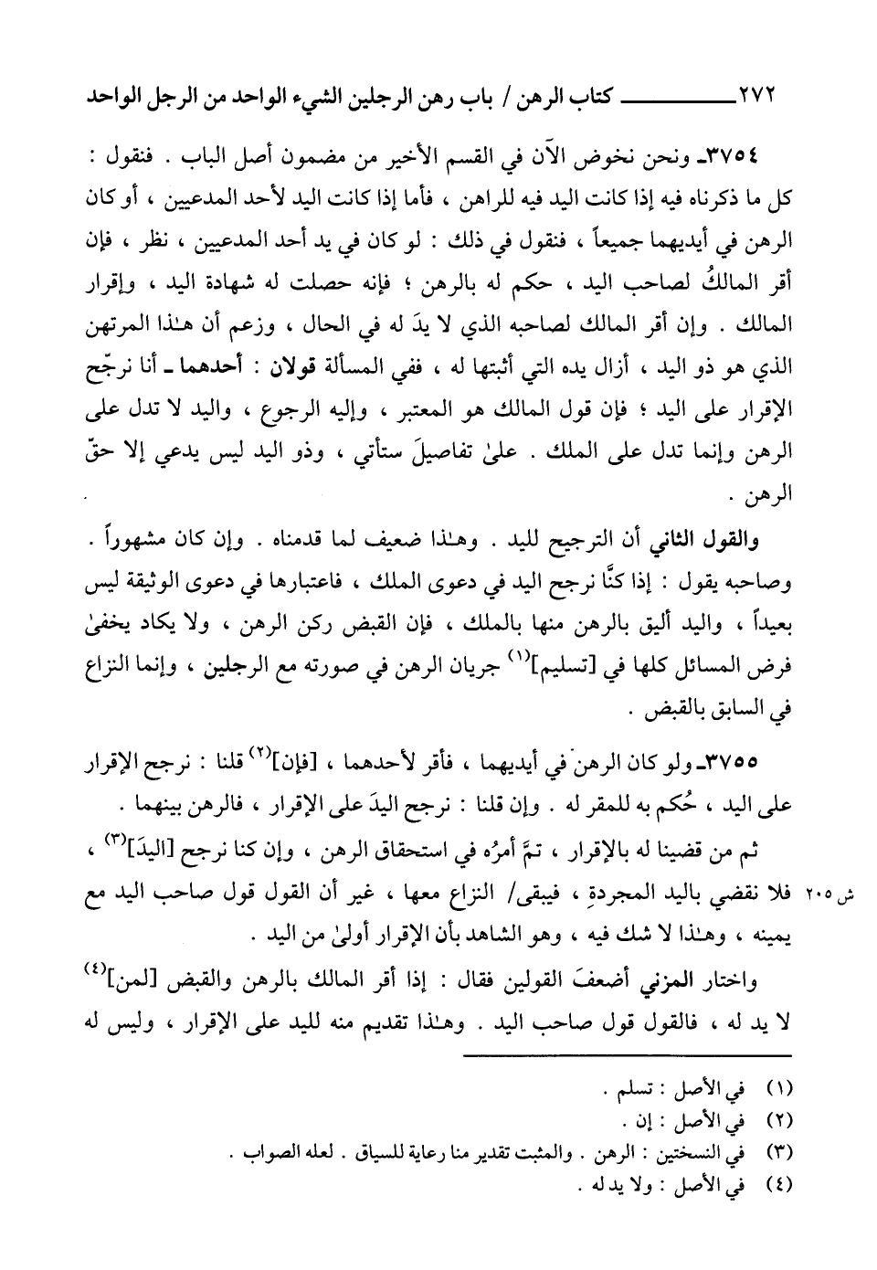 (3) في النسختين: الرهن. والمثبت تقدير منا رعاية للسياق. لعله الصواب.