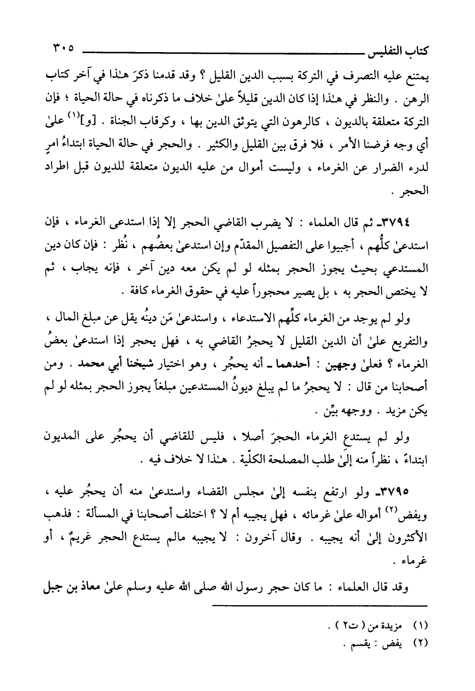 3794 - ثم قال العلماء: لا يضرب القاضي الحجر إلا إذا. استدعى الغرماء، فإن