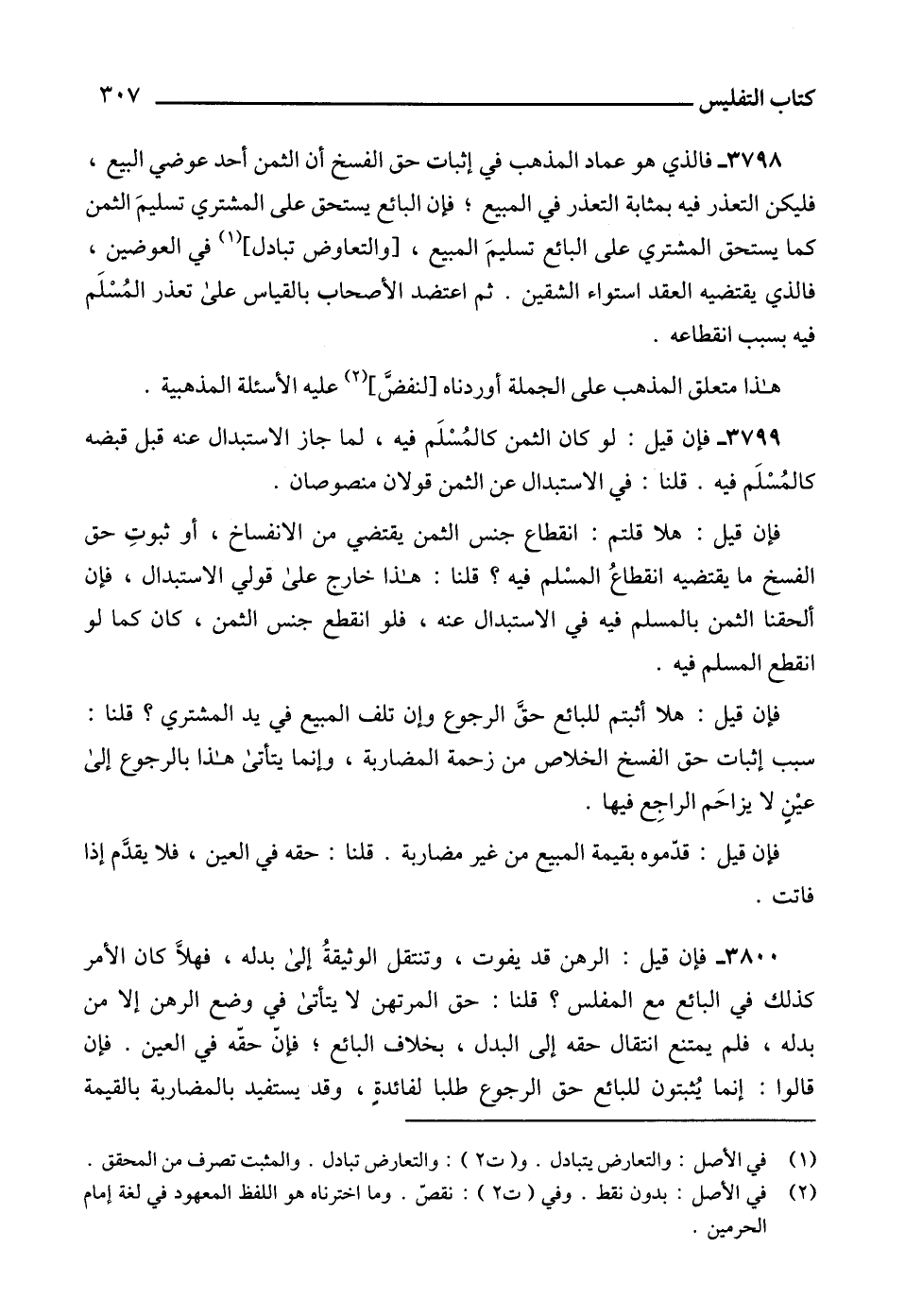 (1) في الأصل: والتعارض يتبادل. و (ت 2): والتعارض تبادل. والمثبت تصرف من المحقق.