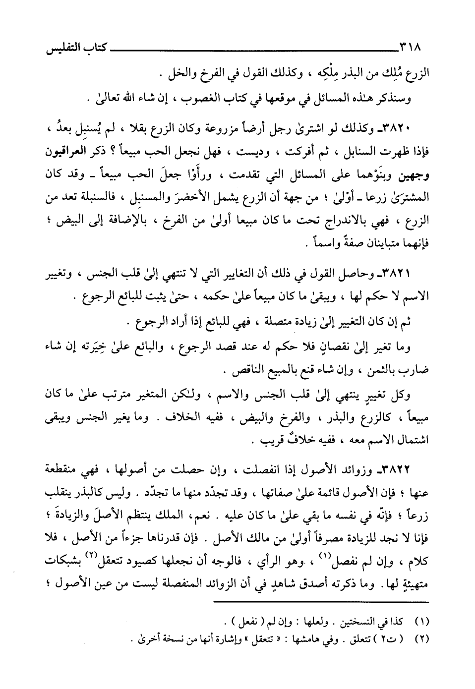 3821 - وحاصل القول في ذلك أن التغايير التي لا تنتهي إلى قلب الجنس، وتغيير الاسم لا حكم لها، ويبقى ما كان مبيعاً على حكمه، حتى يثبت للبائع الرجوع.