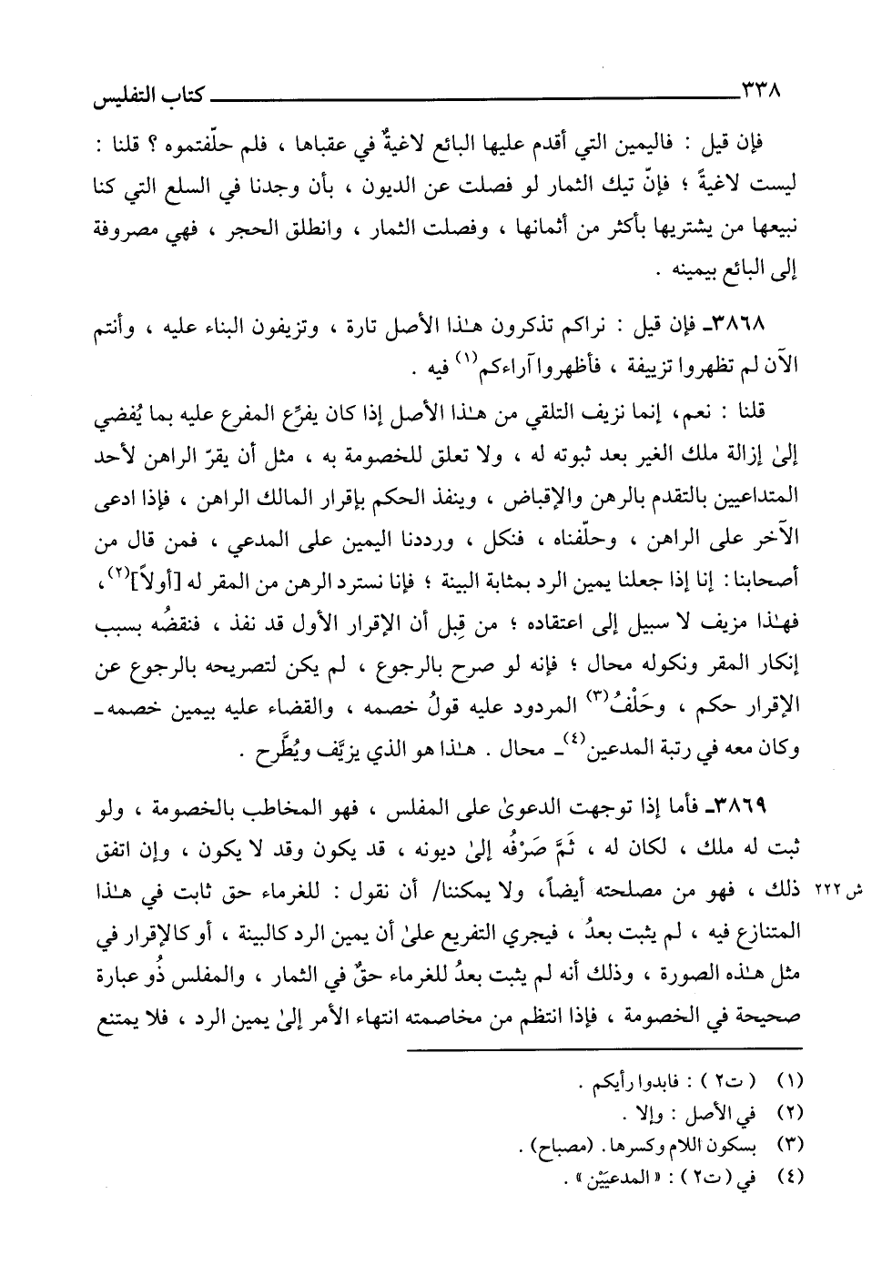 3868 - فإن قيل: نراكم تذكرون هذا الأصل تارة، وتزيفون البناء عليه، وأنتم الآن لم تظهروا تزييفة، فأظهروا آراءكم (1) فيه.
