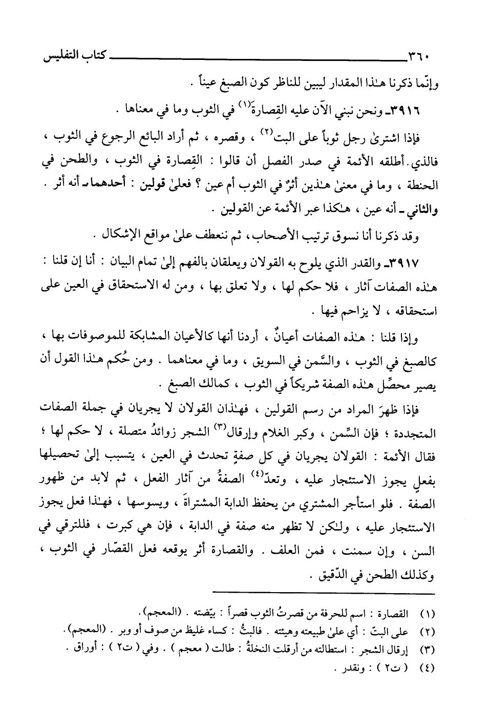 فإذا اشترى رجل ثوباًً على البت (2)، وقصره، ثم أراد البائع الرجوع في الثوب، فالذي. أطلقه الأئمة في صدر الفصل أن قالوا: القِصارة في الثوب، والطحن في الحنطة، وما في معنى هذين أثرٌ في الثوب أم عين؟ فعلى قولين: أحدهما - أنه أثر. والثاني - أنه عين، هكذا عبر الأئمة عن القولين.