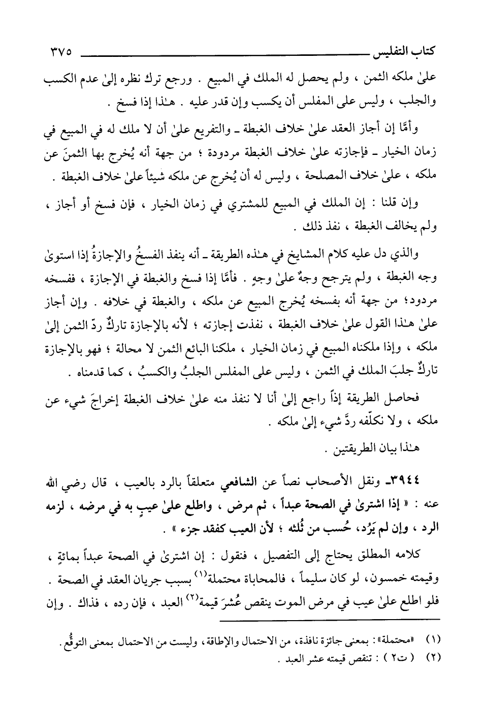 3944 - ونقل الأصحاب نصاً عن الشافعي متعلقاً بالرد بالعيب، قال رضي الله عنه: "إذا اشترى في الصحة عبداً، ثم مرض، واطلع على عيبٍ به في مرضه، لزمه الرد، وإن لم يَرُد، حُسب من ثُلثه؛ لأن العيب كفقد جزء".