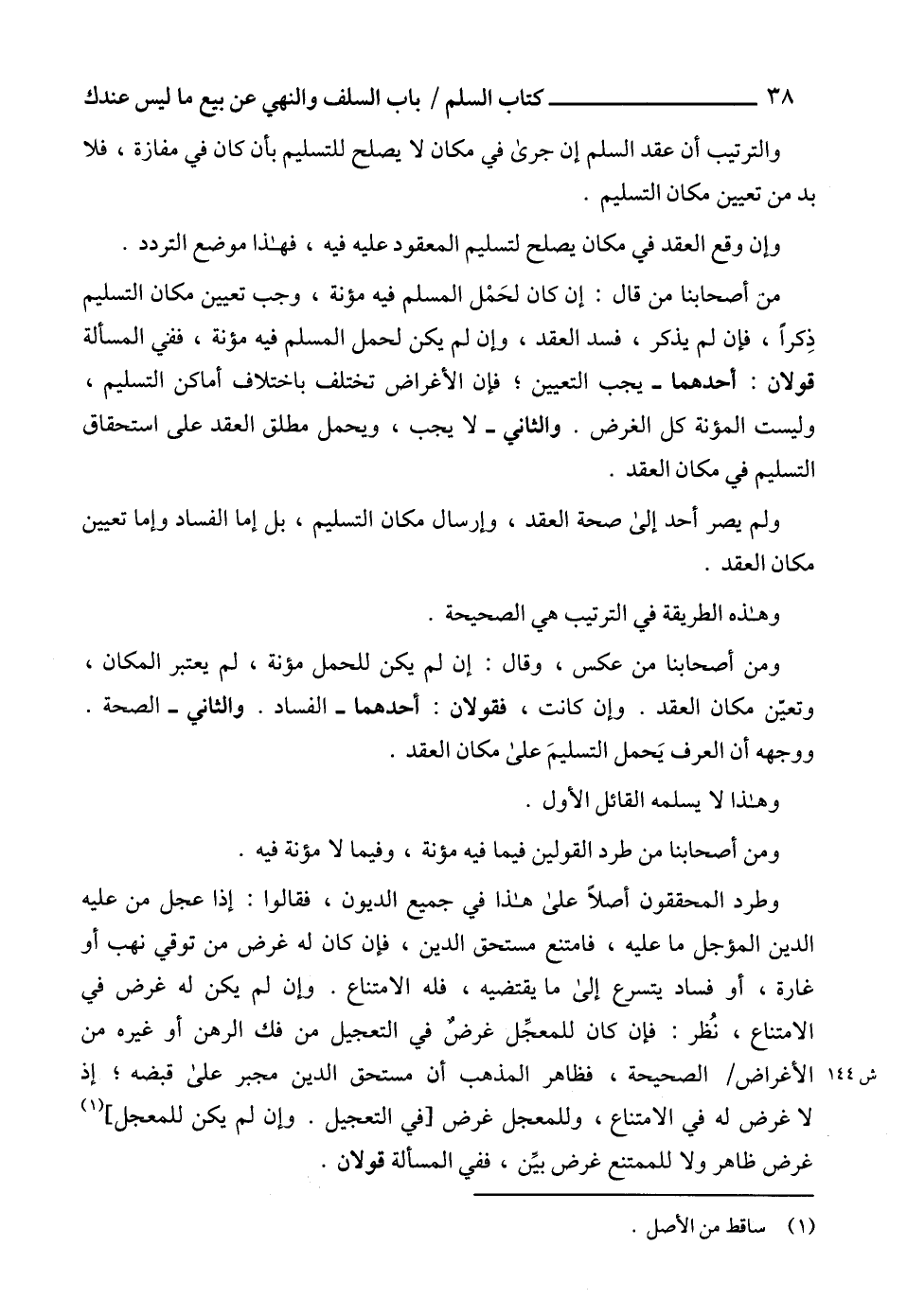 والترتيب أن عقد السلم إن جرى في مكان لا يصلح للتسليم بأن كان في مفازة، فلا بد من تعيين مكان التسليم.