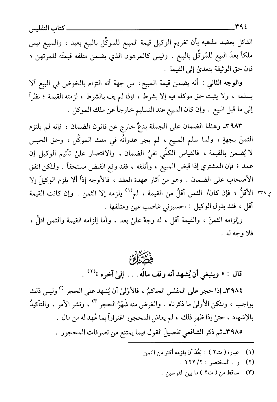 3985 - ثم ذكر الشافعي تفصيلَ القول فيما يمتنع من تصرفات المحجور.