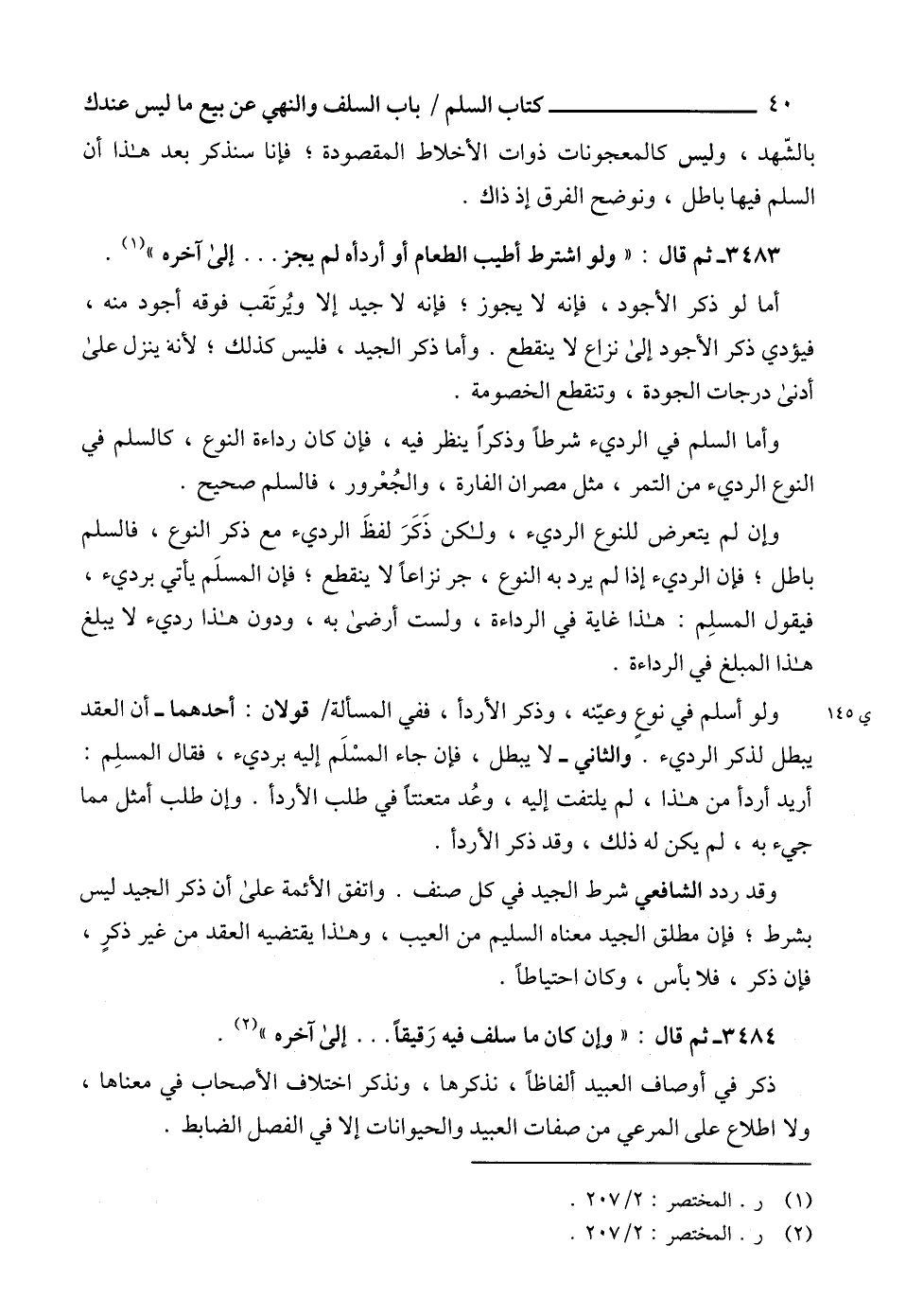 3483 - ثم قال: " ولو اشترط أطيب الطعام أو أردأه لم يجز ... إلى آخره " (1).