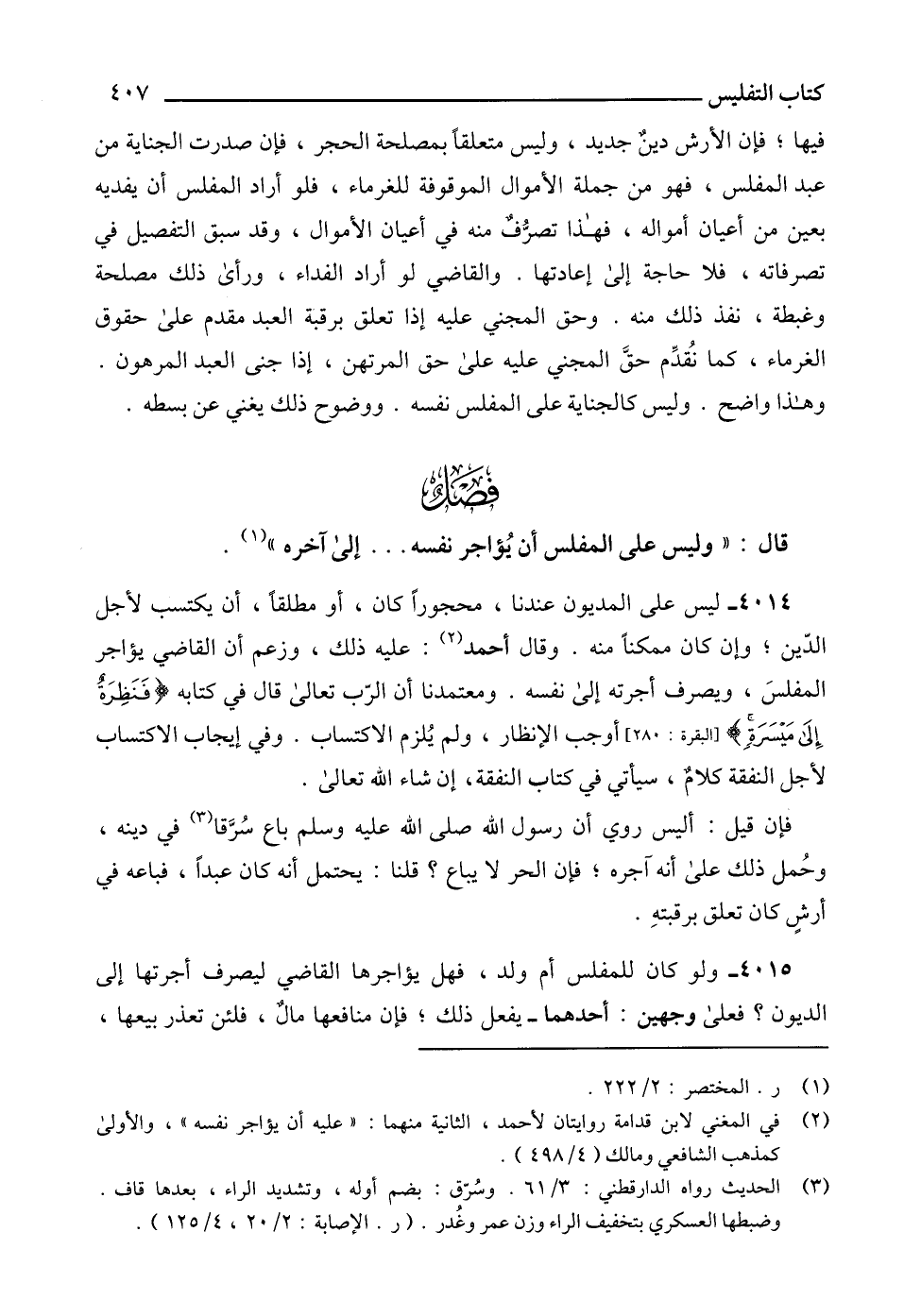 قال: " وليس على المفلس أن يُؤاجر نفسه ... إلى آخره " (1).