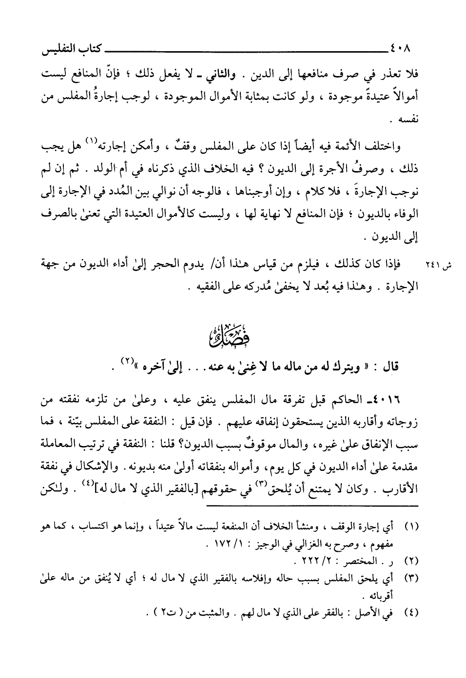 (3) أي يلحق المفلس بسبب حاله وإفلاسه بالفقير الذي لا مال له؛ أي لا يُنفق من ماله على أقربائه.