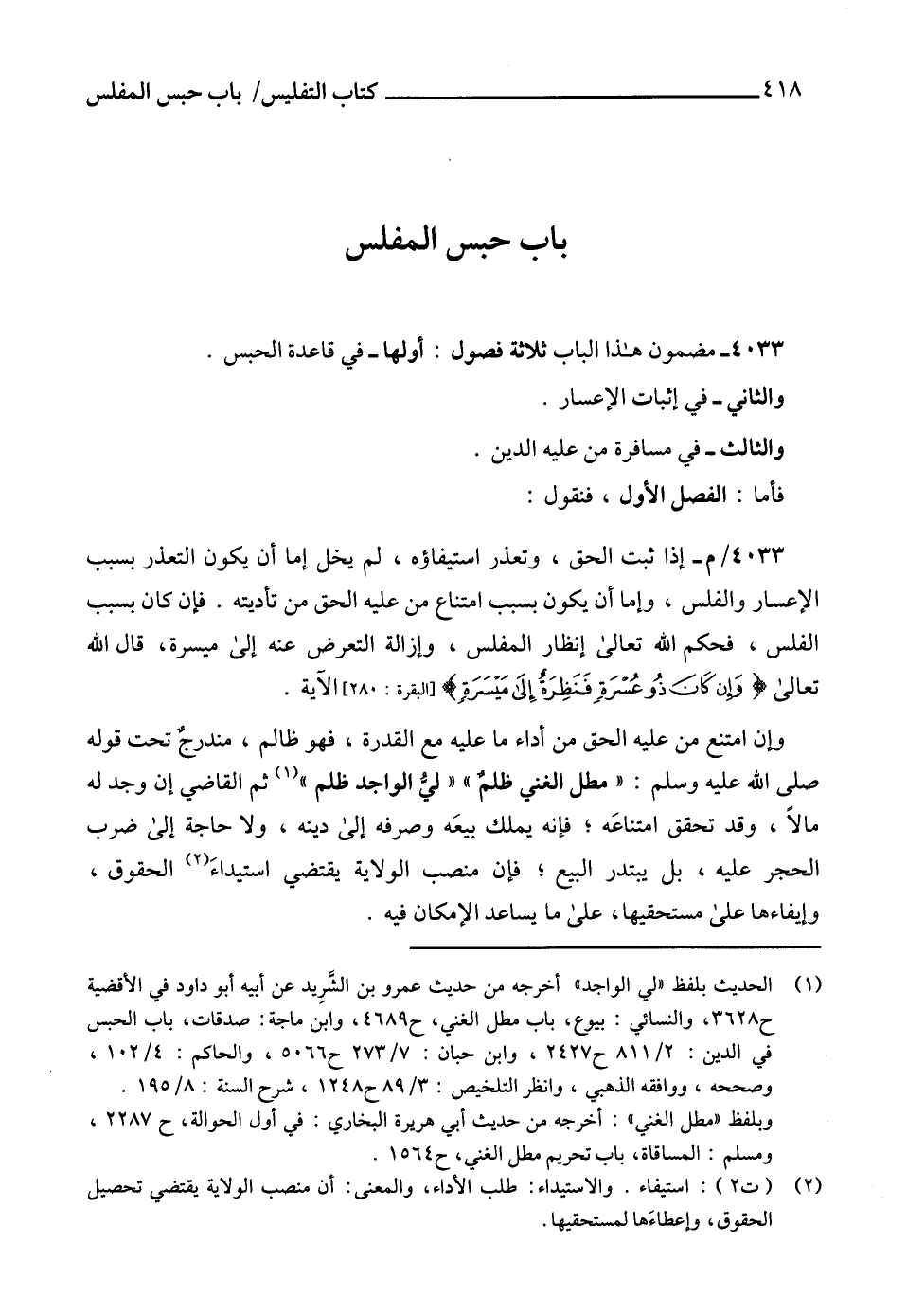 4033 - مضمون هذا الباب ثلاثة فصول: أولها - في قاعدة الحبس.