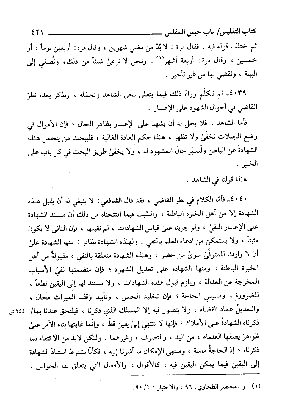 4039 - ثم نتكلّم وراءَ ذلك فيما يتعلق بحق الشاهد وتحمّله، ونذكر بعده نظرَ القاضي في أحوال الشهود على الإعسار.