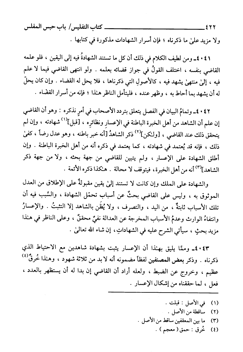 4043 - وممَّا يليق بهذا أن الإعسار يثبت بشهادة شاهدين مع الاحتياط الذي ذكرناه. وذكر بعض المصنفين لفظاً مضمونه أنه لا بد من ثلاثة شهود، وهذا خُرقٌ (4) عظيم، وخروج عن الضبط، ولعله أراد أن القاضي إن بدا له أن يستظهر بالعدد، فعل، لما حققناه من إشكال الإعسار.