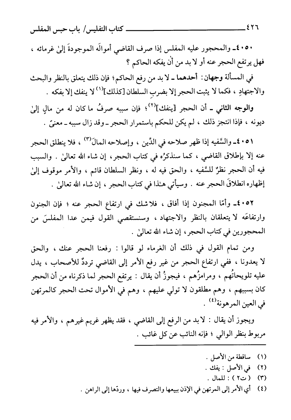 4050 - والمحجور عليه المفلس إذا صرف القاضي أموالَه الموجودةَ إلى غرمائه، فهل يرتفع الحجر عنه أو لا بد من أن يفكه الحاكم؟