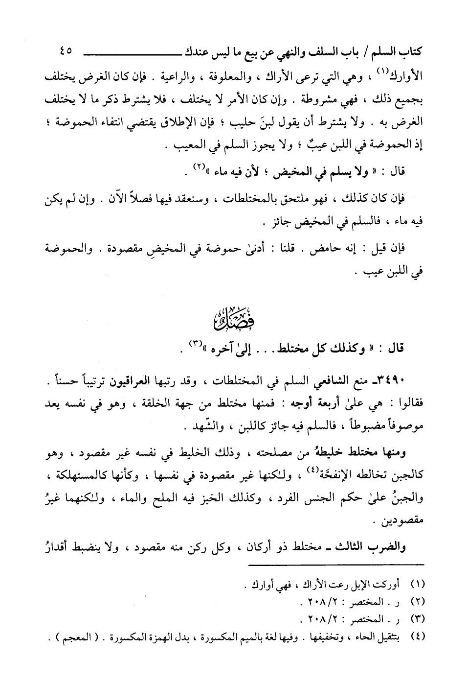 3490 - منع الشافعي السلم في المختلطات، وقد رتبها العراقيون ترتيباً حسناً.
