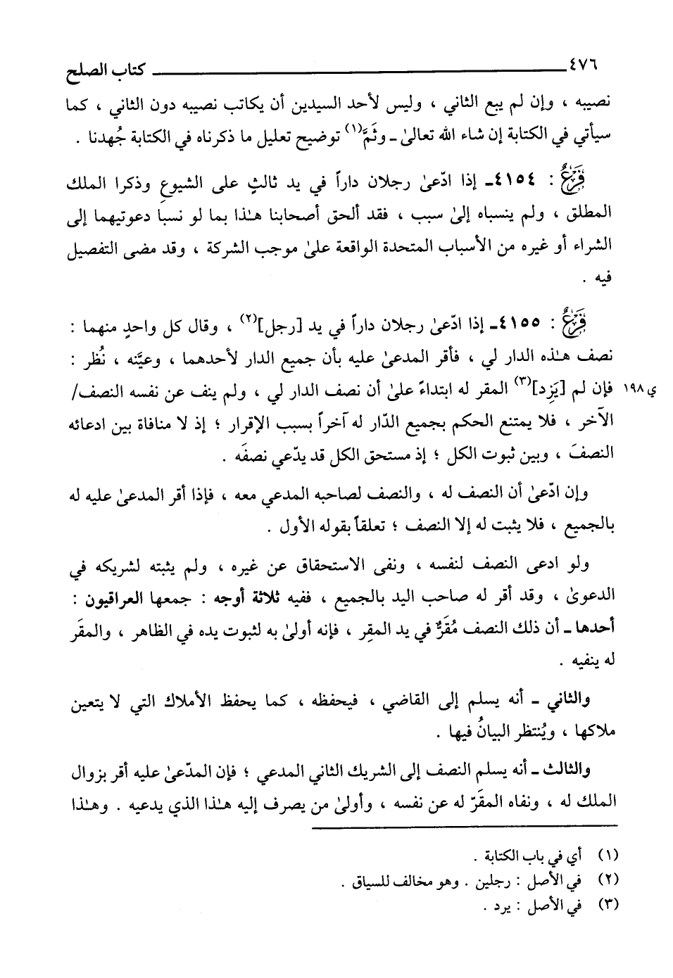 4154 - إذا ادّعى رجلان داراً في يد ثالثٍ على الشيوعِ وذكرا الملك المطلق، ولم ينسباه إلى سبب، فقد ألحق أصحابنا هذا بما لو نسبا دعوتيهما إلى الشراء أو غيره من الأسباب المتحدة الواقعة على موجب الشركة، وقد مضى التفصيل فيه.