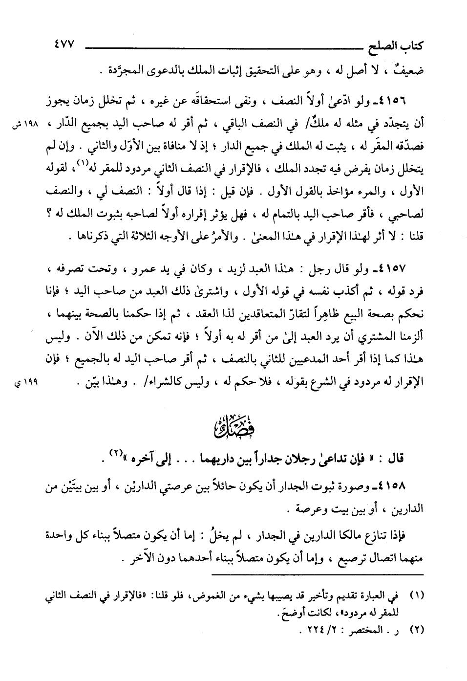 4158 - وصورة ثبوت الجدار أن يكون حائلاً بين عرصتي الداريْن، أو بين بيتَيْن من الدارين، أو بين بيت وعرصة.