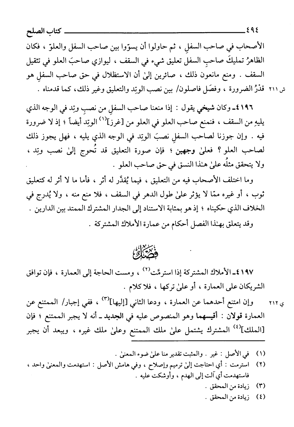 4197 - الأملاك المشتركة إذا استرمَّت (2)، ومست الحاجة إلى العمارة، فإن توافق الشريكان على العمارة، أو على تركها، فلا كلام.