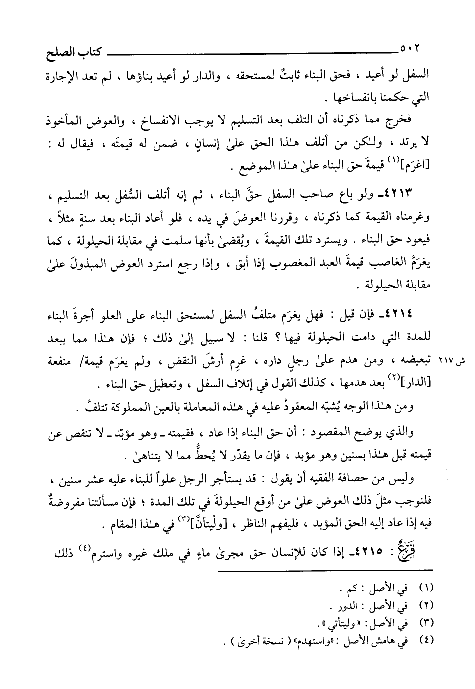 4213 - ولو باع صاحب السفل حقَّ البناء، ثم إنه أتلف السُّفل بعد التسليم، وغرمناه القيمة كما ذكرناه، وقررنا العوضَ في يده، فلو أعاد البناء بعد سنةٍ مثلاً، فيعود حق البناء. ويسترد تلك القيمةَ، ويُقضى بأنها سلمت في مقابلة الحيلولة، كما يغرَمُ الغاصب قيمةَ العبد المغصوب إذا أبق، وإذا رجع استرد العوض المبذولَ على مقابلة الحيلولة.