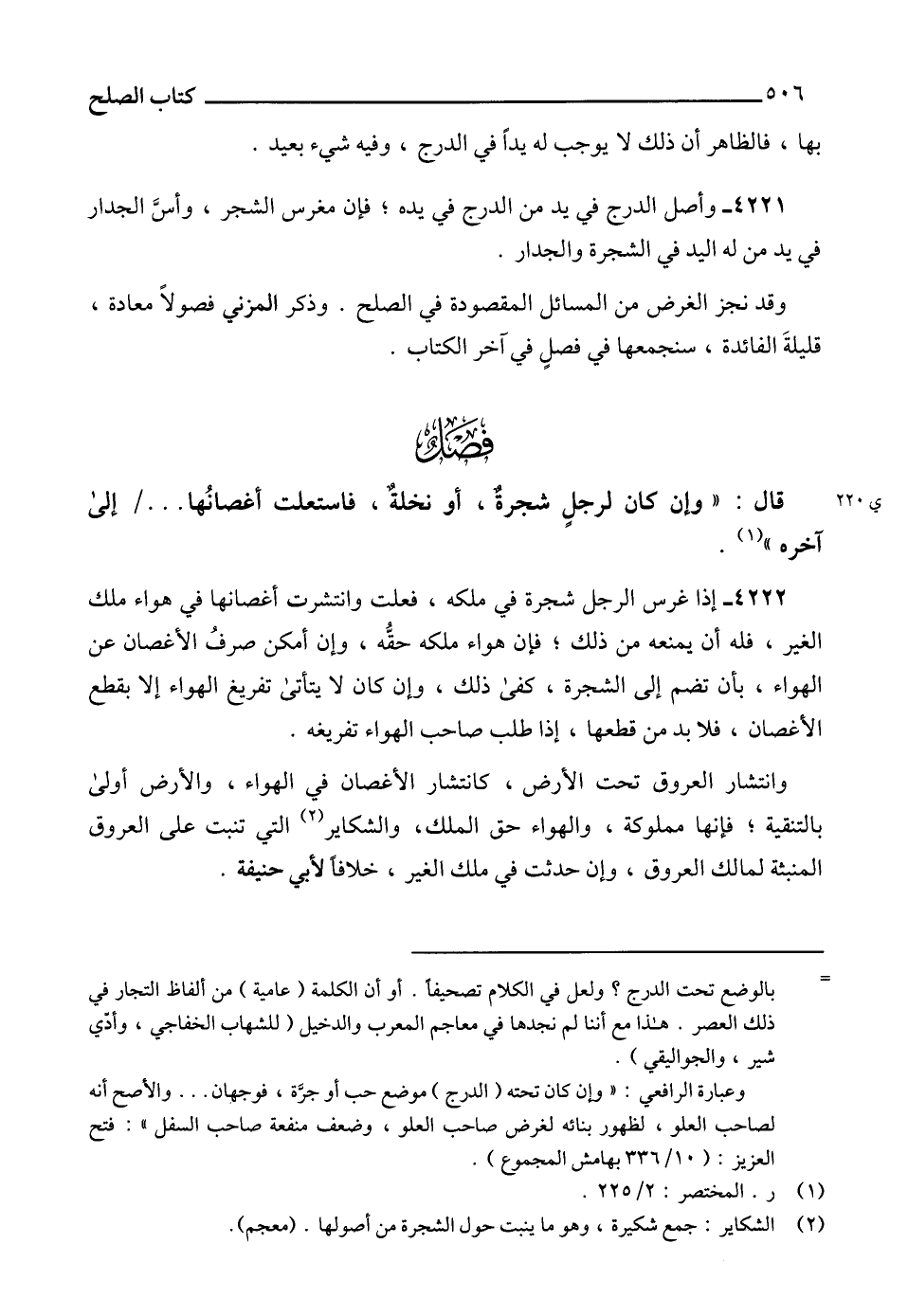 قال: "وإن كان لرجلٍ شجرةٌ، أو نخلةٌ، فاستعلت أغصانُها ... إلى آخره" (1).