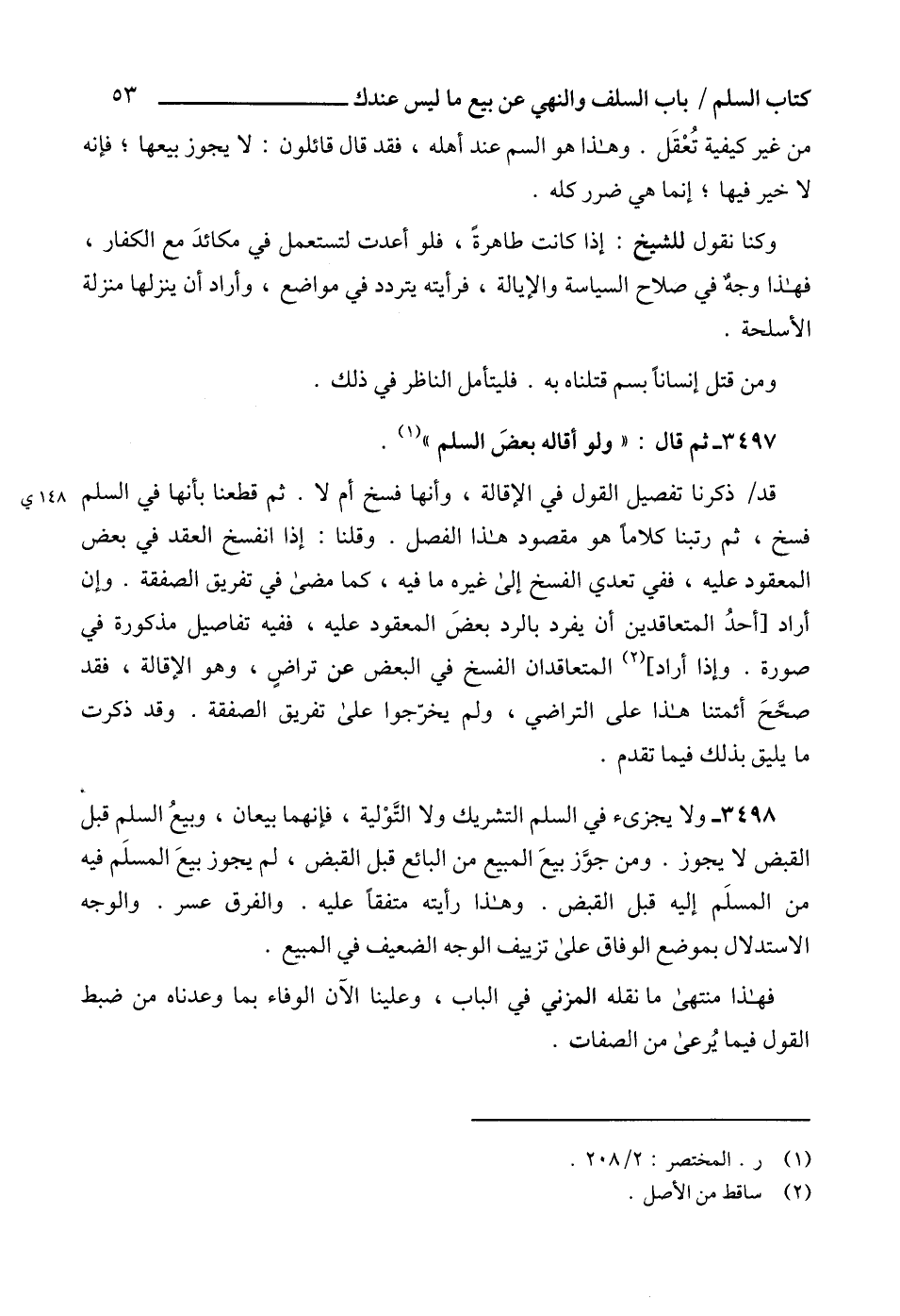 3497 - ثم قال: " ولو أقاله بعضَ السلم " (1).
