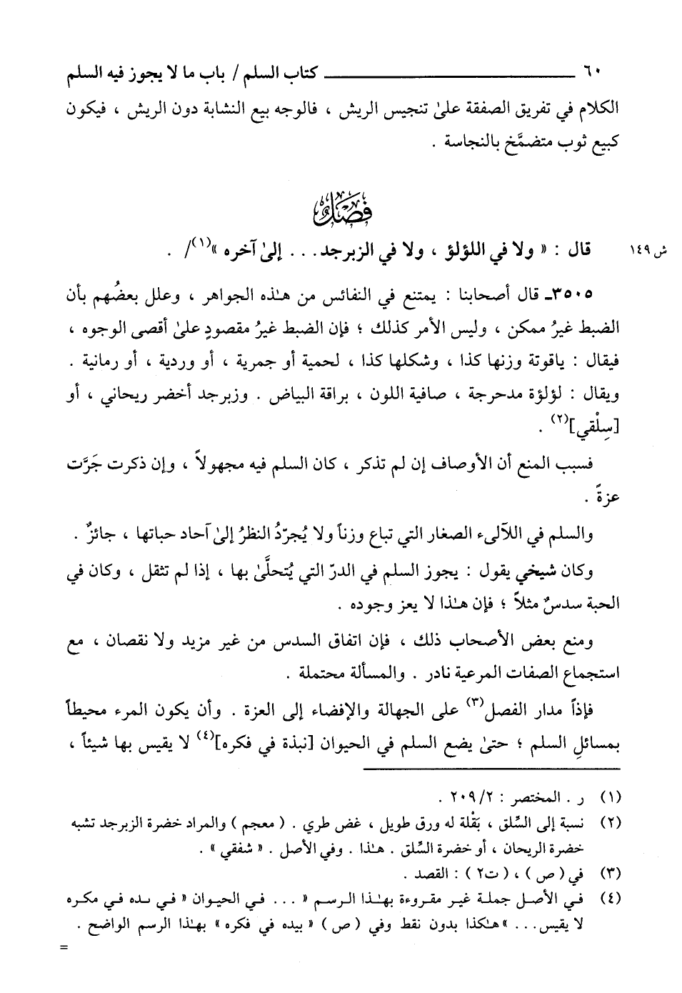 3505 - قال أصحابنا: يمتنع في النفائس من هذه الجواهر، وعلل بعضُهم بأن الضبط غيرُ ممكن، وليس الأمر كذلك؛ فإن الضبط غيرُ مقصودٍ على أقصى الوجوه، فيقال: ياقوتة وزنها كذا، وشكلها كذا، لحمية أو جمرية، أو وردية، أو رمانية.