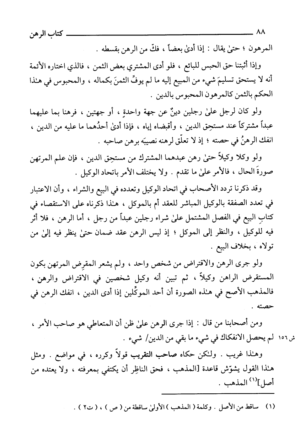(1) ساقط من الأصل. وكلمة (المذهب) الأولى ساقطة من (ص)، (ت 2).
