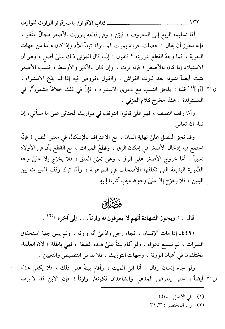 وقد نجز الفصل على نهاية البيان، مع الاعتراف بالإشكال في معنى النص؛ فإنّه اجتمع فيه إدخال الأصغر في إمكان الرق، وقطعُ الميراث، مع القطع بأن في الأولاد نسيباً. أمّا خروج الأصغر على الرق، وعن تعيّن العتق، فلا يخرّج إلا على وجه الصُّورة البديعة التي تكلفها الأصحاب في المرهونة، وأمّا ترك وقف الميراث بين البنين، فلا يخرّج إلا على وجهٍ ضعيفٍ أشرنا إليهِ.