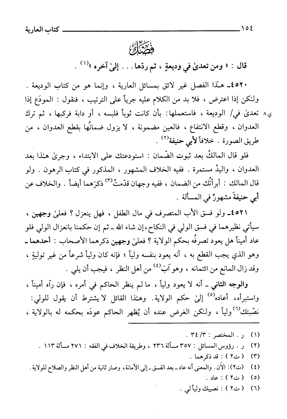 4520 - هذا الفصل غير لائق بمسائل العارية، وإنما هو من كتاب الوديعة.