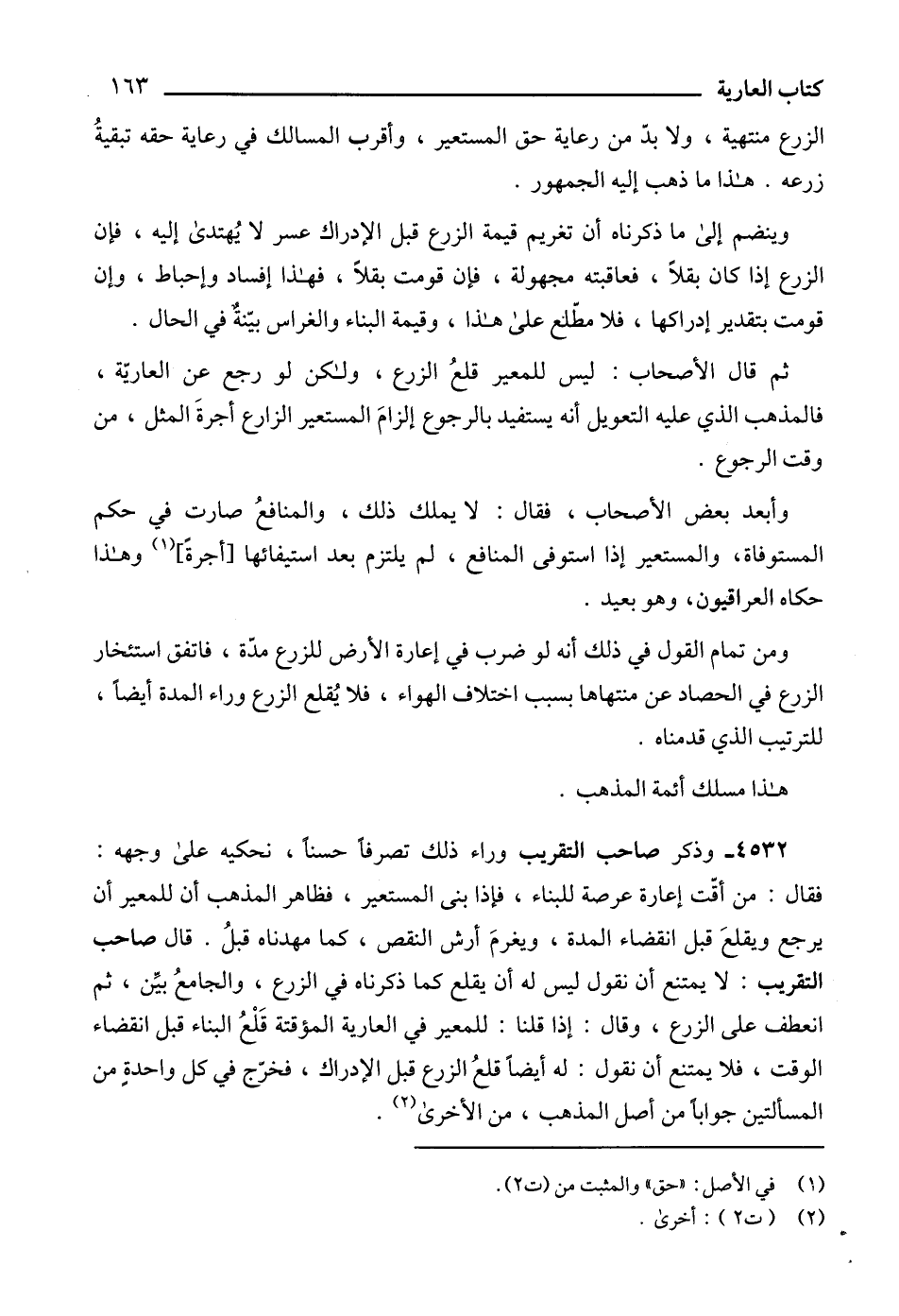 الزرع منتهية، ولا بدّ من رعاية حق المستعير، وأقرب المسالك في رعاية حقه تبقيةُ زرعه. هذا ما ذهب إليه الجمهور.