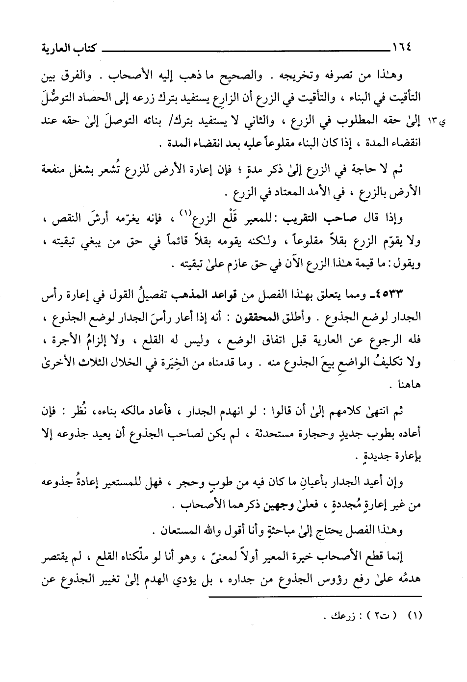4533 - ومما يتعلق بهذا الفصل من قواعد المذهب تفصيلُ القول في إعارة رأس الجدار لوضع الجذوع. وأطلق المحققون: أنه إذا أعار رأسَ الجدار لوضع الجذوع، فله الرجوع عن العارية قبل اتفاق الوضع، وليس له القلع، ولا إلزامُ الأجرة، ولا تكليفُ الواضعِ بيعَ الجذوع منه. وما قدمناه من الخِيَرة في الخلال الثلاث الأخرى هاهنا.